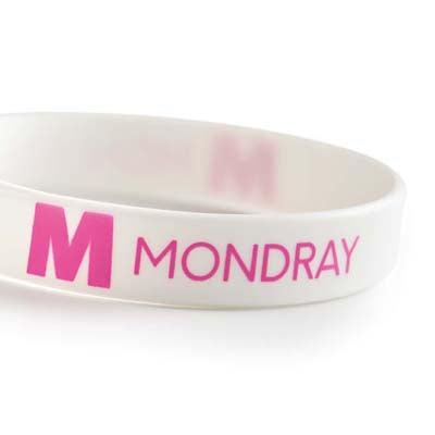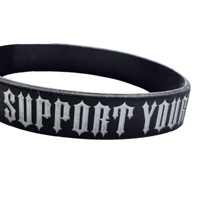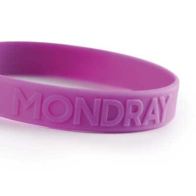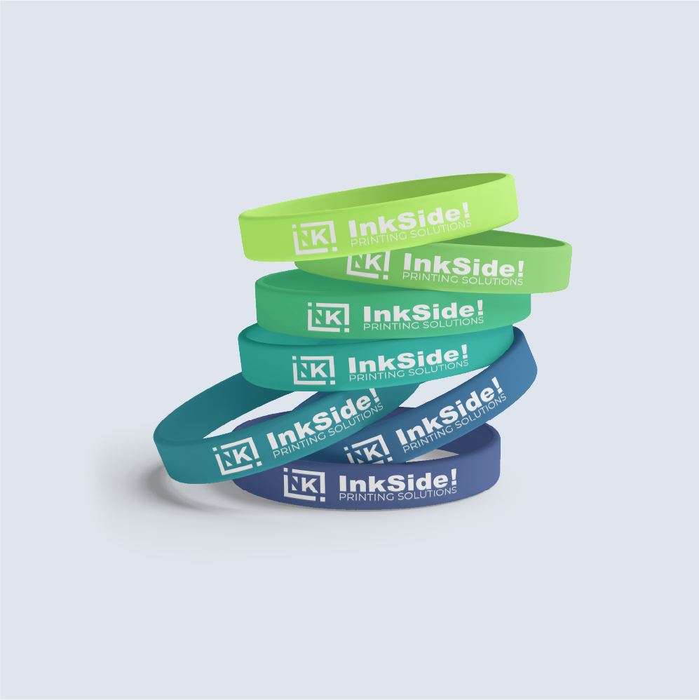 Bracelet en silicone au couleurs Pantone avec votre logo imprimé, débossé (logo en creux) ou embossé (logo en relief). Vous pouvez également choisir la couleur de l’encre pour le logo en creux.