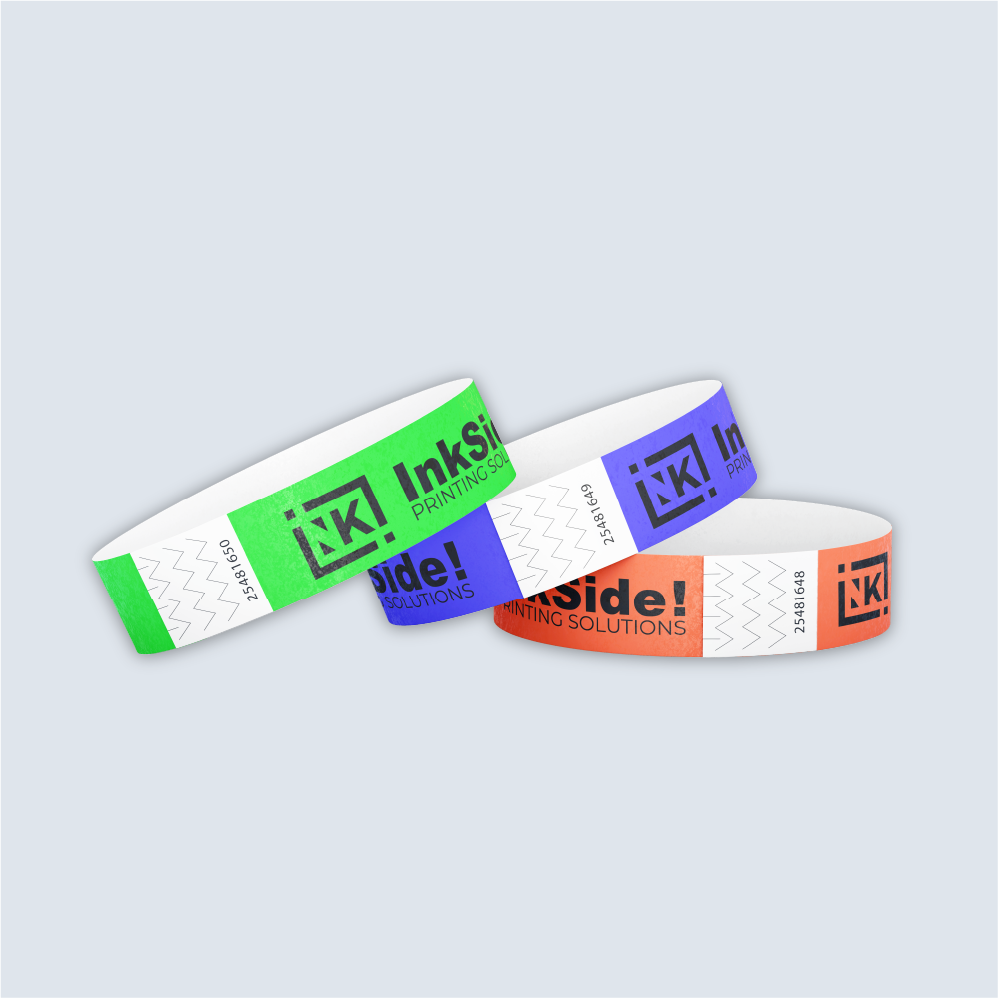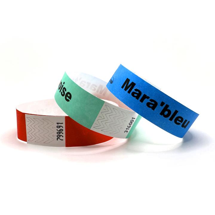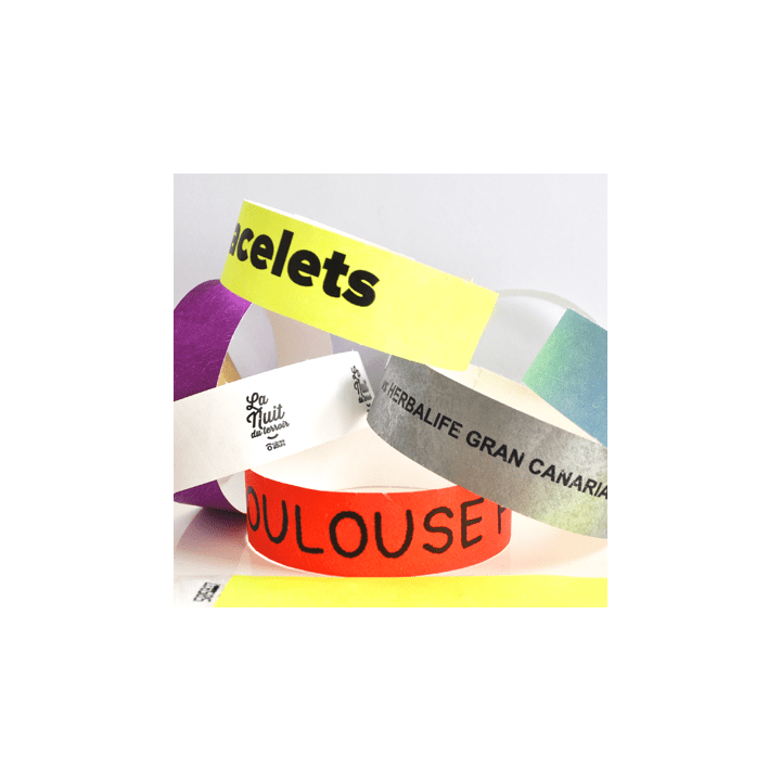 Découvrez la gamme de bracelets Tyvek de chez InkSide! Des bracelets avec marquage, indispensables pour l’organisation d’une manifestation culturelle ou sportive. Ces bracelets personnalisables en noir uniquement sont des solutions économiques, résistantes et confortables. Des modèles idéals pour un événement relativement court, allant jusqu’à deux jours par exemple. Ils sont dotés d’une fermeture adhésive résistante et sont conçus pour être indéchirables : des propriétés qui garantissent à l’organisateur une meilleure sérénité quant au déroulement de son événement. (quantité min: 50)