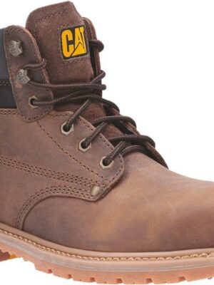 Chaussures de haute sécurité CAT confortable et très résistante quelles que soient les conditions. 2 crochets à laçage rapide et construction trépointe Goodyear. Tige cuir nubuck résistant à l’eau. Col matelassé pour un meilleur confort. Maille évacuant l’humidité. Embout de protection et semelle anti perforation en acier. Semelle intérieure amovible en PU avec amorti au talon. Semelle extérieure résistante à la chaleur et aux hydrocarbures. Norme EN ISO 20345:2011 S3 HRO SRA.