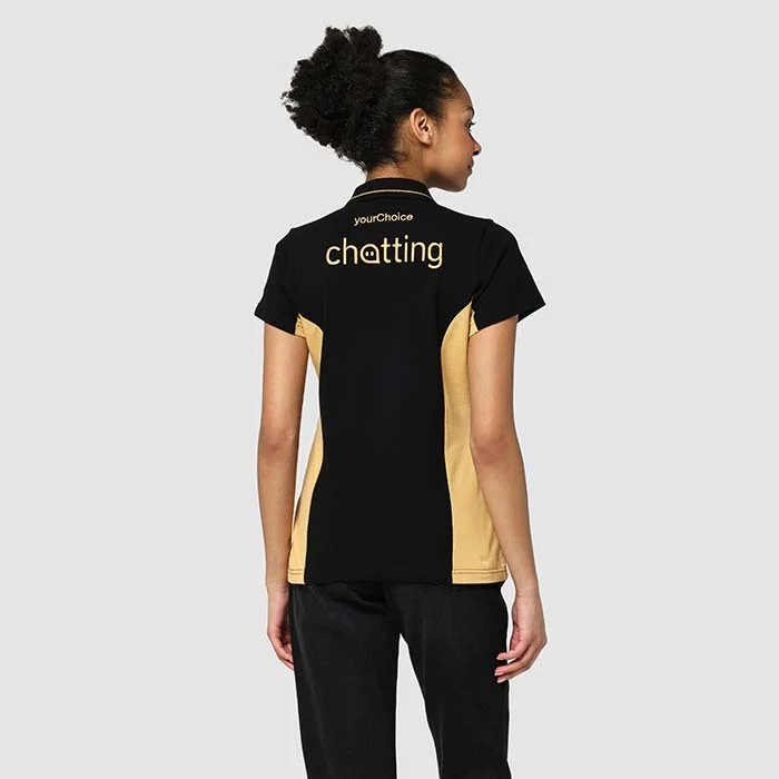 Polo sur mesure avec éléments de couleur contrastée sur les manches et les côtés. Disponible en tailles homme et femme. Les tailles hommes sont souvent utilisées comme unisexes.