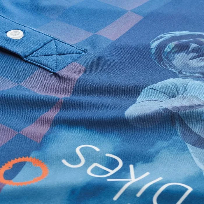 Polo en polyester entièrement sublimé. Disponible en tailles homme et femme. Les tailles hommes sont souvent utilisées comme unisexes.