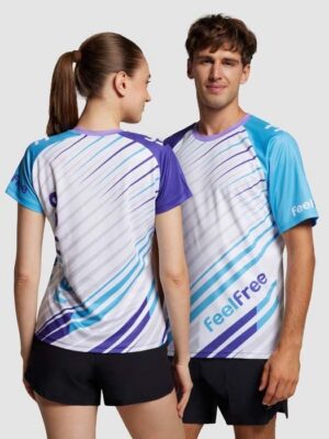 Maillot raglan sublimé à col ras du cou en polyester interlock testé en laboratoire.