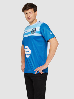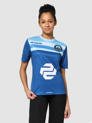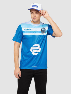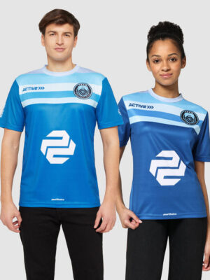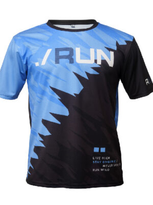 Maillot sublimé à col ras du cou en polyester mesh respirant.