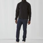 Veste Softshell tissée déperlante 2 couches. Couche extérieure : 96 % polyester / 4 % élasthanne. Couche intérieure : micro-polaire 100 % polyester avec traitement anti-boulochage. 2 poches avant zippées et 2 poches intérieures. Coutures renforcées par une double surpiqûre. Zips SBS. Accès facile pour décoration (avant – arrière – manches).