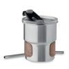 Gobelet simple paroi en acier inoxydable recyclé (90 % d’acier inoxydable recyclé et 10 % d’acier inoxydable) avec manchon amovible en bois d’acacia et paille en acier inoxydable. Couvercle anti-fuite à ouverture directe. Capacité : 260 ml. Comme il s’agit d’un gobelet à paroi simple, un transfert de chaleur peut encore se produire.