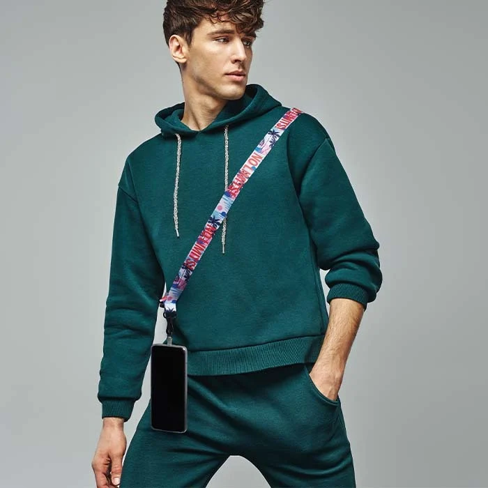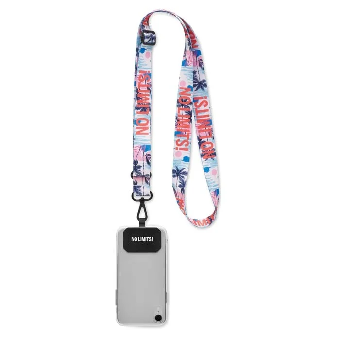 Tour de cou fabriqué en polyester avec un mousqueton en métal ou choisissez l’une des autres options de clip.