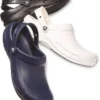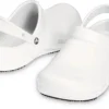 Sabots confortables, destinés aux professionnels de la restauration, de l’hôtellerie et de la santé : avec leur conception antidérapante, les Crocs™ Bistro vous offrent tout ce dont vos pieds ont besoin sur le lieu de travail ! Ce modèle à semelle antidérapante Crocs Lock™ est entièrement moulé en résine Croslite™ pour un confort, une légèreté et une durabilité optimaux. Le confort est renforcé avec l’assise plantaire bénéficiant d’une forme spécifique et une bride de talon Croslite™ pour une bonne tenue sur le pied. Un design fermé sur l’avant et une zone métatarsienne plus épaisse protègent le dessus du pied des liquides déversés. Nettoyage facile à l’eau et au savon et séchage rapide. ié CE et testé ASTM F2913-11. Conforme à la norme EN ISO 20347:2012 OB SRC.