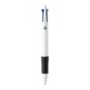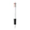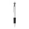 Stylo à bille multicolore en ABS recyclé avec grip en caoutchouc. Encre noire, bleue, rouge et verte. Matieres : : ABS recyclé.