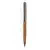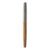 Élégante parure de stylos à bille et roller en métal, avec corps en bois et attributs en bronze brillant. Dans une boîte cadeau bicolore, encre bleue. Produit de la marque André Philippe. Matieres : : Métal , Bois.