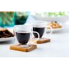 Set de tasses espresso en verre borosilicate à double paroi avec 2 tasses et soucoupes en bambou, 90 ml. Dans une boite de présentation en papier kraft. Matieres : : Verre borosilicaté , Bambou . Passe au lave-vaisselle : Oui – sans les accessoires Passe au micro-ondes : Oui – sans les accessoires.