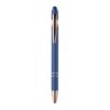 Stylo bille poussoir en aluminium recyclé avec détails façon or rose. Encre bleue.