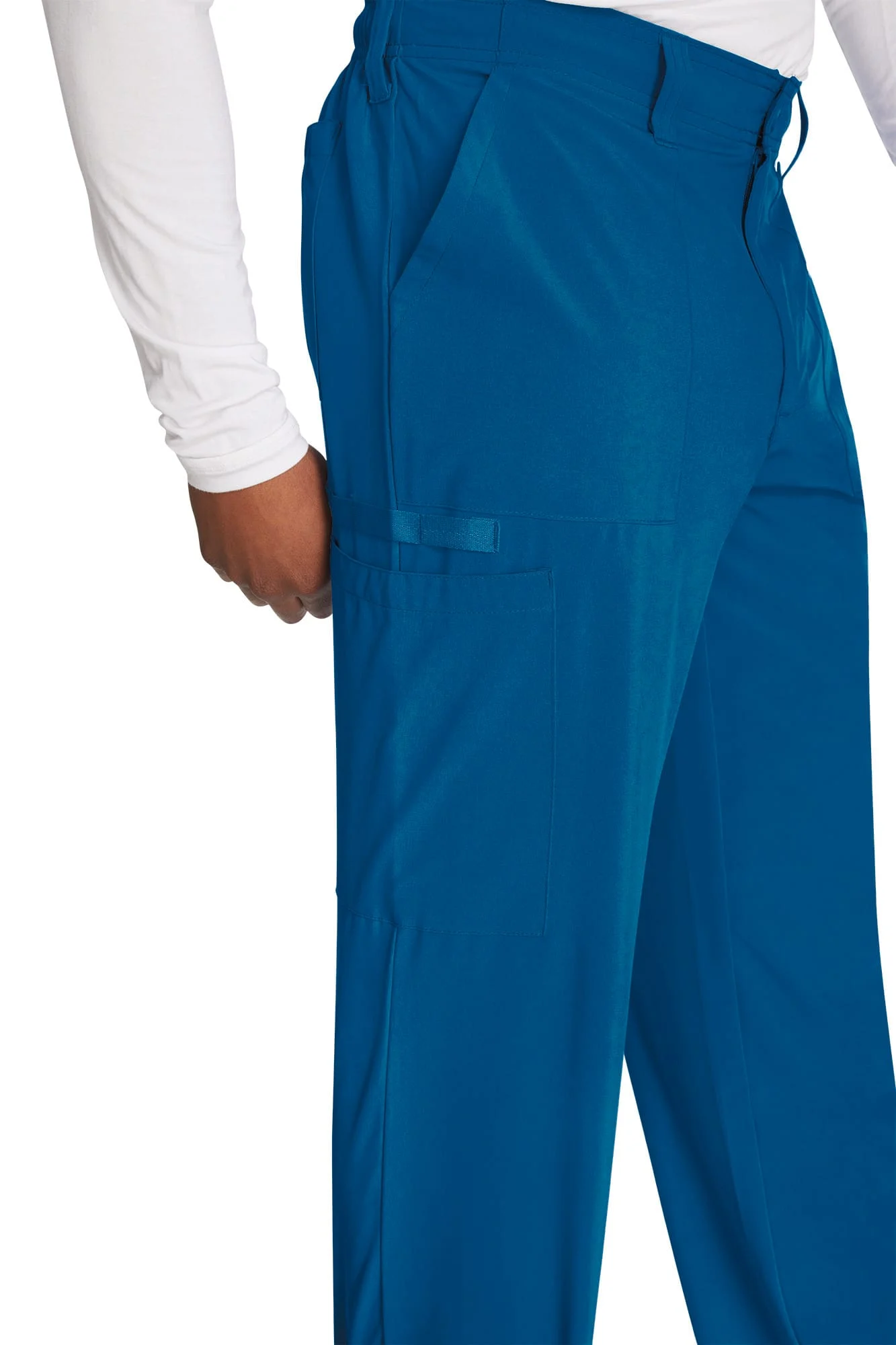 95% polyester / 5% élasthanne. Coupe masculine. Ceinture élastique au dos avec cordon intérieur. Braguette zippée avec fermeture à bouton. Cinq passants de ceinture. Six poches : deux poches frontales plaquées, deux poches cargo, deux poches arrière. Bande en sergé utilitaire boucle d’instrument.