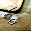 Porte-clés en alliage de zinc forme maison. Emballage boite carton blanche.