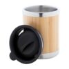 Mug thermos isotherme en acier inoxydable recyclé à double paroi recouvert de bambou avec bec verseur en PP, 300 ml. Matieres : : Bambou , Inox recyclé , Plastique (PP) . Passe au lave-vaisselle : Non Passe au micro-ondes : Non.