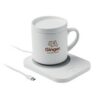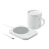 Chargeur sans fil 2 en 1 15W et chauffe-tasse en ABS, mug en céramique inclus. Garde les boissons chaudes jusqu’à un maximum de 50ºC. 3 réglages de température sur panneau tactile. Câble USB. Sortie : DC 9V/1.67A (15W). Capacité 250ml.