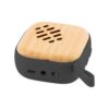Haut-parleur sans fil en bambou et boîtier en plastique ABS avec fonction d’appel mains libres et batterie rechargeable intégrée. Câble de chargement USB inclus. Matieres : : Bambou , Plastique (ABS).