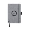 Bloc-notes recouvert de polyester RPET avec chargeur rapide sans fil intégré (10 W) et 80 feuilles lignées. Format A5. Livré avec câble chargeur USB. Polyester 300D RPET. Matieres : : 300D Polyester PET recyclé.