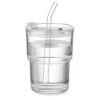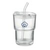 Gobelet en verre avec couvercle et paille amovible en verre. Couvercle étanche à ouverture directe. Capacité de 400 ml.