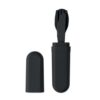 Set de couverts réutilisables avec étui en PLA de maïs. Chaque set comprend une fourchette, un couteau, une cuillère et un étui.