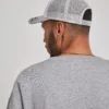 60% coton / 40% polyester (filet: 100% polyester). Forme plate, partie avant avec un canevas renforcé, couture centrale en style snapback.