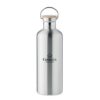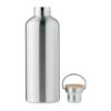 Bouteille isolante sous vide à double paroi en acier inoxydable avec couvercle en bambou et poignée de transport. Capacité : 1500 ml. Anti fuite. Le bambou est un produit naturel, et présente de légères variations de couleur, de décoration et de tailles.