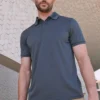 100% polyester recyclé Coolplus® micro piqué technologie. Coupe regular. Patte de boutonnage 3 boutons ton sur ton. Col en bord côtes. Fentes latérales.