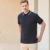 100% polyester Cool plus® micro piqué. Coupe classique. Patte de boutonnage 2 boutons ton sur ton. Bord côtes au col et aux manches avec contraste couleur. Fentes latérales.