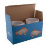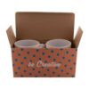 Boîte en carton ondulé impression quadri sur mesure pour 2 mugs de 300-350 ml. Quantité minimale : 50 pièces. Matieres : : Carton.