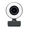 Webcam HD 1080P en ABS avec microphone intégré et lumière annulaire réglable.