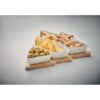 Plat de service en bambou en forme de sapin avec trois compartiments de service en céramique. Le bambou est un produit naturel, et présente de légères variations de couleur, de décoration et de tailles.