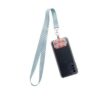 Tour de cou personnalisable en RPET avec mousqueton en métal et insert de téléphone imprimé en quadri dans un papier indéchirable. Impressions par sublimation sur les deux faces. Quantité minimale : 100 pièces. Matieres : : PET recyclé , Métal , Papier.
