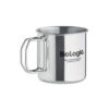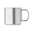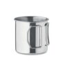 Mug en acier inoxydable à simple paroi avec poignée pliable. Capacité : 330 ml.