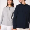Coupe moderne, col rond et textile technique premium.