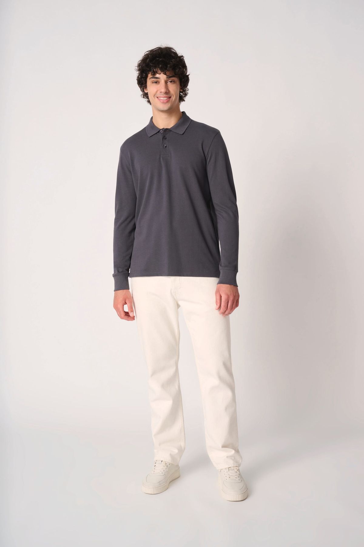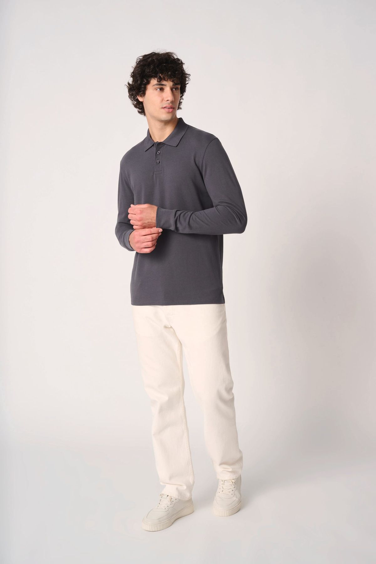 Coloris unis : 100% coton. Coloris Ideal Oxford Grey : 90% Coton / 10% Viscose. Maille piquée. Coupe droite. Col et bas de manches finition bord côte 1×1. Patte de boutonnage 3 boutons ton sur ton. Bande de propreté intérieure col ton sur ton. Fentes latérales. Ourlet bas de vêtement finition double aiguilles. Etiquette de marque détachable.