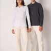 Coloris unis : 100% coton. Coloris Ideal Oxford Grey : 90% Coton / 10% Viscose. Maille piquée. Coupe droite. Col et bas de manches finition bord côte 1×1. Patte de boutonnage 3 boutons ton sur ton. Bande de propreté intérieure col ton sur ton. Fentes latérales. Ourlet bas de vêtement finition double aiguilles. Etiquette de marque détachable.