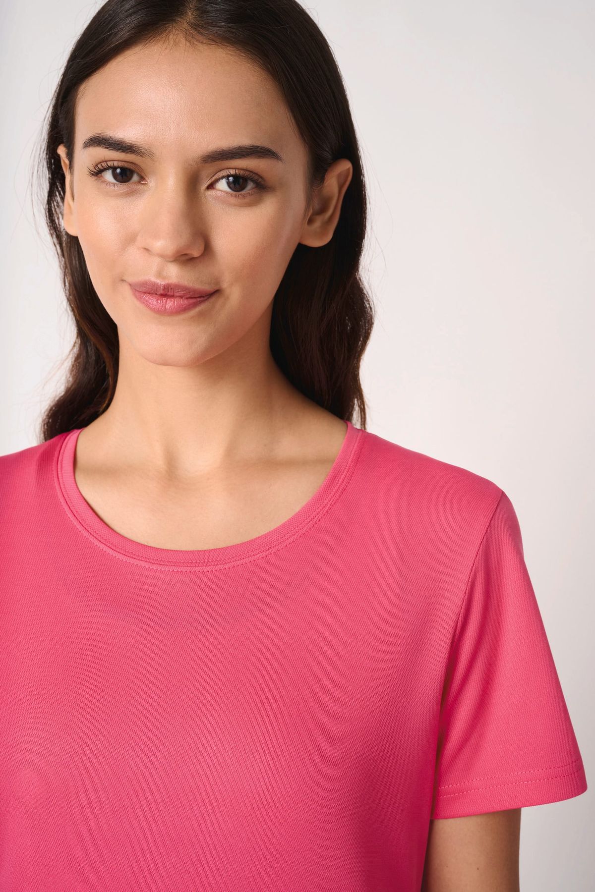100% polyester. Maille piquée mesh. Tissu léger à séchage rapide. Coupe droite. Col rond en maille piquée mesh avec double surpiqûres. Bande de propreté intérieure col ton sur ton. Ourlets bas de manches et bas de vêtement finition double aiguilles. Etiquette de marque détachable.