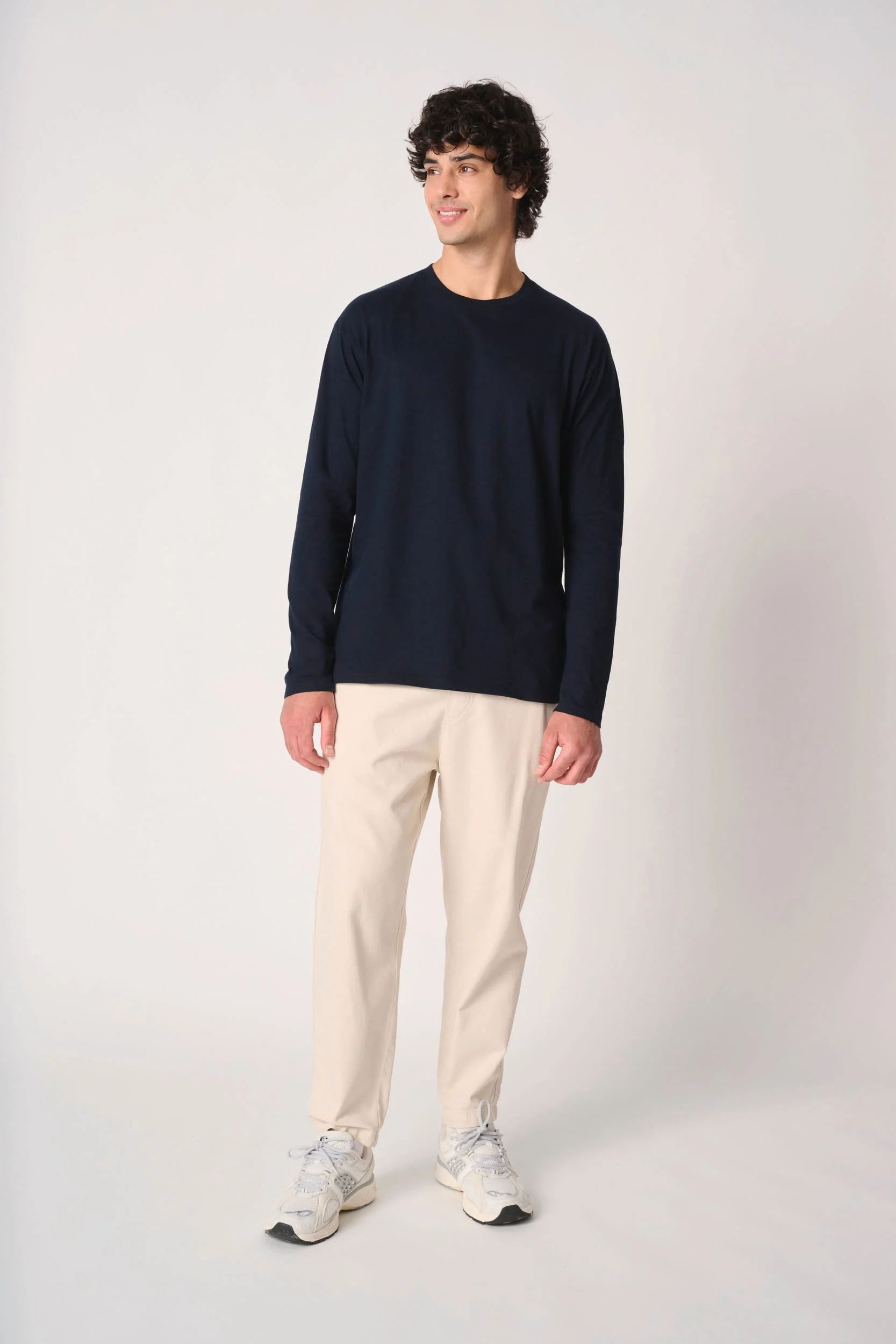 Coloris unis : 100% coton. Coloris Ideal Ash Heather : 99% coton / 1% viscose. Coloris Ideal Oxford Grey : 90% coton / 10% viscose. Maille jersey tubulaire. Coupe droite. Col rond finition bord côte 1×1 avec double surpiqûres. Bande de propreté intérieure col ton sur ton. Ourlets bas de manches et bas de vêtement finition double aiguilles. Etiquette de marque détachable.