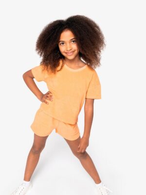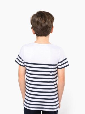 Coloris unis : 100% coton. Coloris Ideal Oxford Grey : 90% coton / 10% viscose. Maille jersey coupé-cousu de la taille 1/2 jusqu’à 6/8 et tubulaire de la taille 8/10 jusqu’à 12/14. Coupe droite. Col rond finition bord côte 1×1 avec double surpiqûres. Bande de propreté intérieure col ton sur ton. Ourlets bas de manches et bas de vêtement finition double aiguilles. Etiquette de marque détachable.