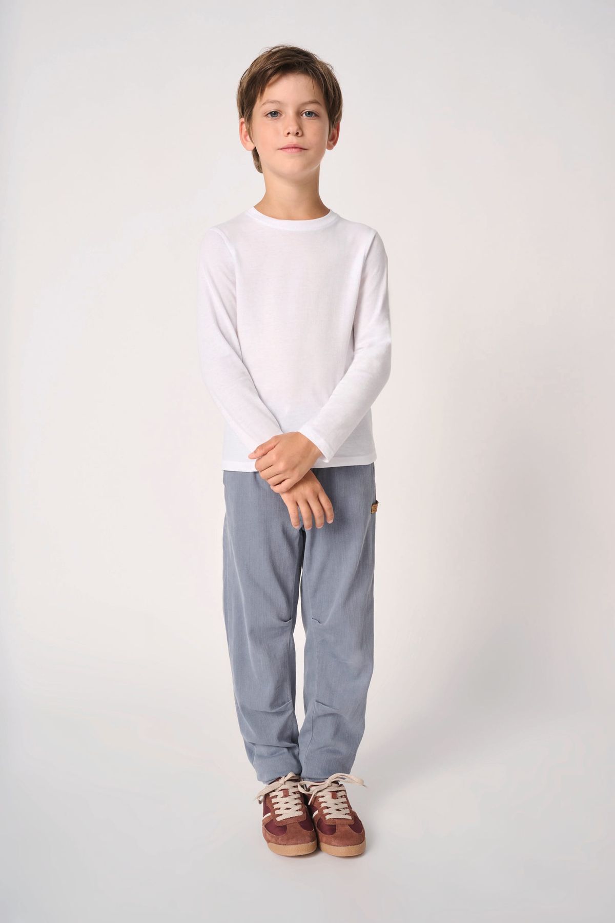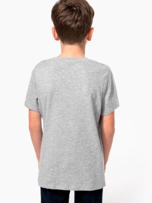 Coloris unis : 100% coton. Coloris Ideal Oxford Grey : 90% coton / 10% viscose. Maille jersey coupé-cousu de la taille 1/2 jusqu’à 6/8 et tubulaire de la taille 8/10 jusqu’à 12/14. Coupe droite. Col rond finition bord côte 1×1 avec double surpiqûres. Bande de propreté intérieure col ton sur ton. Ourlets bas de manches et bas de vêtement finition double aiguilles. Etiquette de marque détachable.