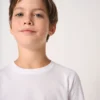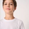 Coloris unis : 100% coton. Coloris Ideal Oxford Grey : 90% coton / 10% viscose. Maille jersey coupé-cousu de la taille 1/2 jusqu’à 6/8 et tubulaire de la taille 8/10 jusqu’à 12/14. Coupe droite. Col rond finition bord côte 1×1 avec double surpiqûres. Bande de propreté intérieure col ton sur ton. Ourlets bas de manches et bas de vêtement finition double aiguilles. Etiquette de marque détachable.