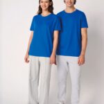 Coloris unis : 100% coton. Coloris Ideal Oxford Grey : 90% Coton / 10% Viscose. Maille jersey tubulaire. Coupe droite. Col rond finition bord côte 1×1 avec double surpiqûres. Bande de propreté intérieure col ton sur ton. Ourlets bas de manches et bas de vêtement finition double aiguilles. Etiquette de marque détachable.