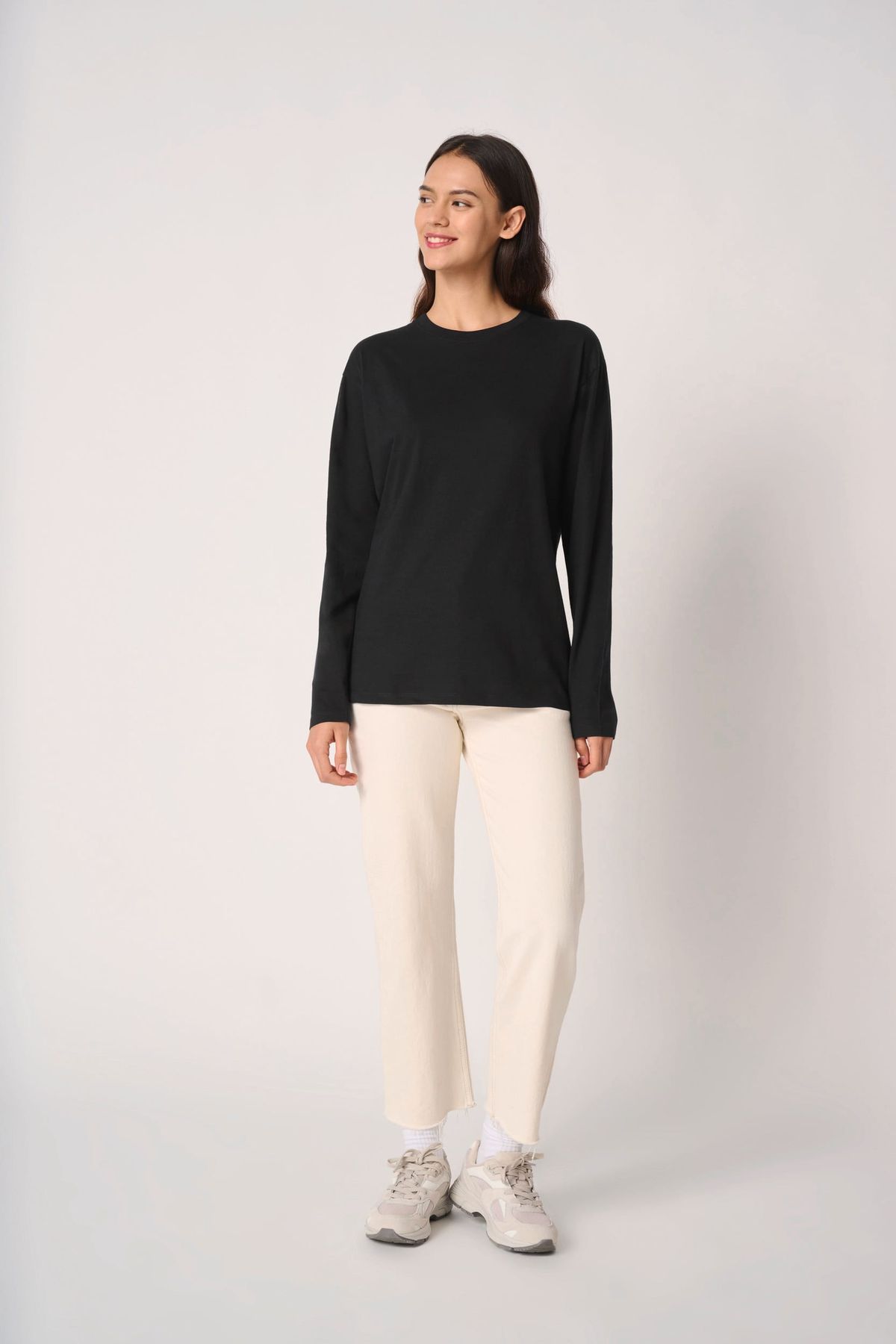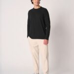 Coloris unis : 100% coton. Coloris Ideal Ash Heather : 99% coton / 1% viscose. Coloris Ideal Oxford Grey : 90% coton / 10% viscose. Maille jersey tubulaire. Coupe droite. Col rond finition bord côte 1×1 avec double surpiqûres. Bande de propreté intérieure col ton sur ton. Ourlets bas de manches et bas de vêtement finition double aiguilles. Etiquette de marque détachable.