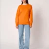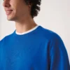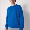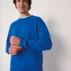 50% coton / 50% polyester. Molleton gratté tubulaire. Coupe droite. Col, bas de manches et bas de vêtement finition bord côte 1×1 avec double surpiqûres. Etiquette de marque détachable.