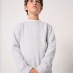 50% coton / 50% polyester. Molleton gratté coupé-cousu. Coupe droite. Col, bas de manches et bas de vêtement finition bord côte 1×1 avec double surpiqûres. Etiquette de marque détachable.