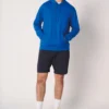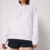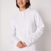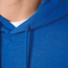 50% coton / 50% polyester. Molleton gratté tubulaire. Coupe droite. Bas de manches et bas de vêtement finition bord côte 1×1 avec double surpiqûres. Poche kangourou. Capuche doublée en jersey avec cordon de serrage rond ton sur ton. Etiquette de marque détachable.