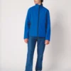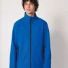 95% polyester / 5% élasthanne. Softshell 2 couches avec traitement déperlant. Intérieur : 100% polyester en micropolaire noire. Coupe droite. Col montant. Deux poches côtés doublées en polytricot, avec zips en nylon et tire-zips noirs. Fermeture zippée en nylon noir avec protège-menton et tire-zip. Empiècements épaules et dos avec surpiqûres. Bande de propreté intérieure col noir. Ourlets bas de manches et bas de vêtement finition double aiguilles. Etiquette de marque détachable.