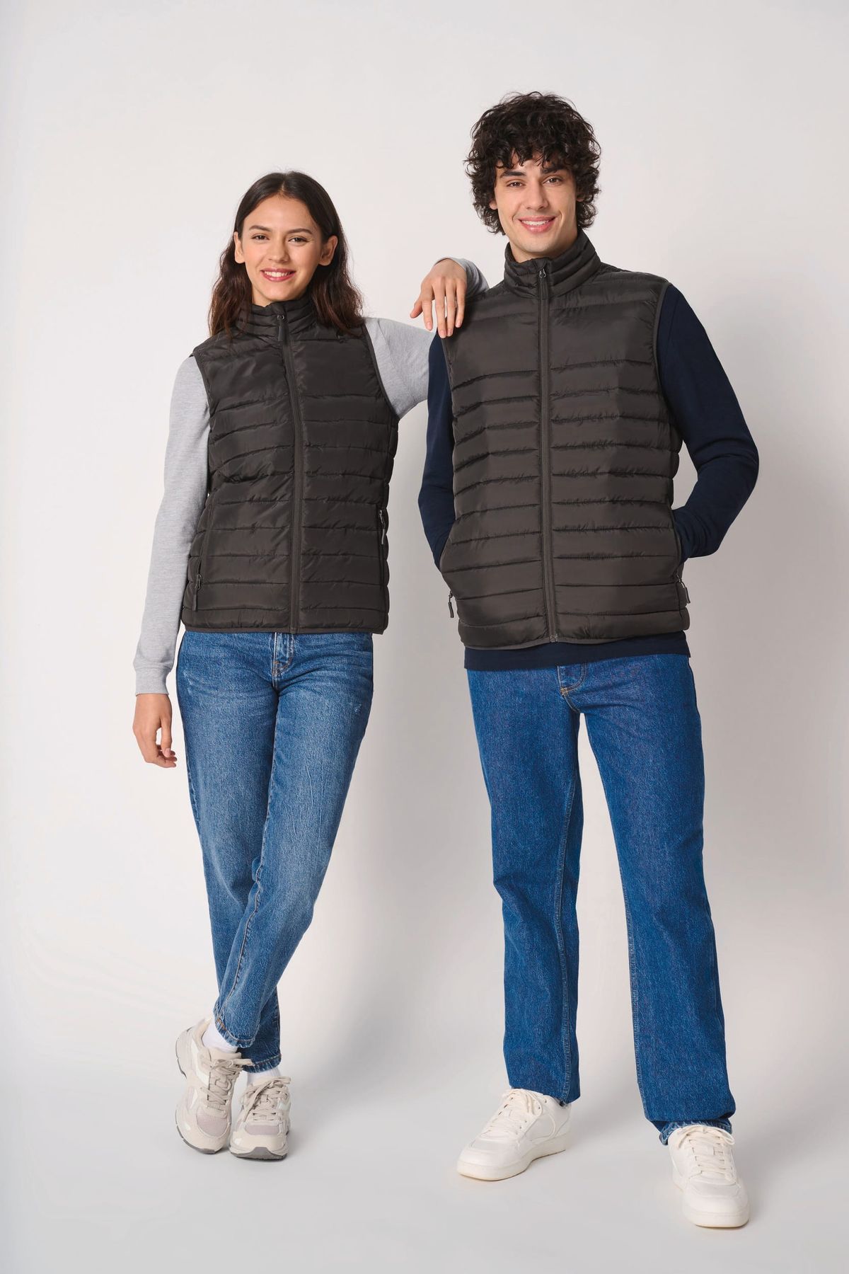 100% polyester 290T. Garniture intérieure : 100% polyester. Doublure : 100% polyester 290T ton sur ton. Coupe droite. Col montant. Deux poches côtés doublées en 290T, avec zips en nylon et tire-zips ton sur ton. Deux poches intérieures. Fermeture zippée en nylon ton sur ton avec protège-menton et tire-zip. Matelassage horizontal. Bande de matelassage plus large de 11 cm à l’avant et de 14,5 cm dans le dos, favorisant la personnalisation. Finition biais élastiqué emmanchures et bas de vêtement ton sur ton. Boucle d’accroche intérieure col. Produit compressible dans son sac de rangement. Etiquette de marque détachable. Garniture injectée : le grammage peut varier selon les zones du vêtement. Le poids total est indicatif.