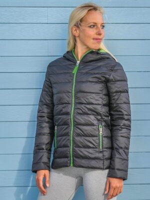 100% polyester 290T. Garniture intérieure : 100% polyester. Doublure : 100% polyester 290T ton sur ton. Coupe droite. Col montant. Deux poches côtés doublées en 290T, avec zips en nylon et tire-zips ton sur ton. Deux poches intérieures. Fermeture zippée en nylon ton sur ton avec protège-menton et tire-zip. Matelassage horizontal. Bande de matelassage plus large de 11 cm à l’avant et de 14,5 cm dans le dos, favorisant la personnalisation. Finition biais élastiqué bas de manches et bas de vêtement ton sur ton. Boucle d’accroche intérieure col. Produit compressible dans son sac de rangement. Etiquette de marque détachable.