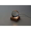 Boule de verre avec lumière LED (100 lumens) sur une base en bois d’hévéa. Comprend un câble de chargement USB (90 cm).