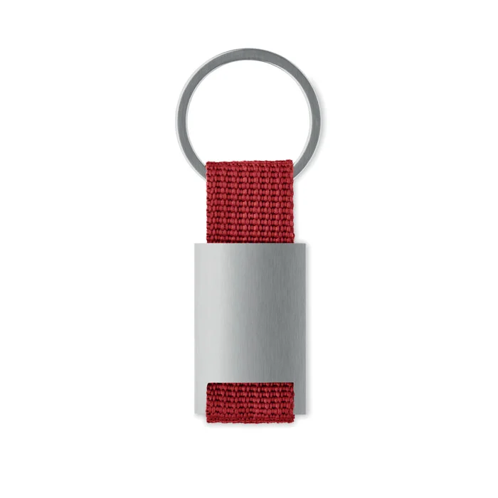 Porte-clés rectangulaire en alliage de zinc. Sangle en PE.